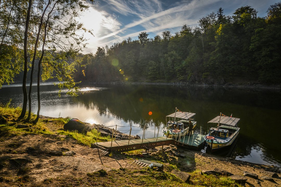 REJSY ODBYWAJĄ SIĘ OD 1 MAJA DO KOŃCA WRZEŚNIA. Rejs statkiem po jeziorze leśniańskim to doskonałe uzupełnienie zwiedzania Zamku Czocha! Podczas rejsu zobaczycie panoramę zamku od strony wody, a lektor przy dźwiękach muzyki w baśniowy sposób opowie Wam historię poławiania pereł, budowy zapory wodnej i przebudowy zamku Czocha. Rejs statkiem do idealna atrakcja dla rodzin z dziećmi, par czy grup zorganizowanych, niezależnie od pogody (statki są zadaszone). Czas trwania: 30 min. Przystań stateczków wycieczkowych znajduje się bezpośrednio przy zamku: Zamek Czocha - 200 m Dolina Pereł - 2 km muzeum Słomiany Dwór - 2 km Świeradów Zdrój - 20 km restauracja Zielony Piec - 2 km